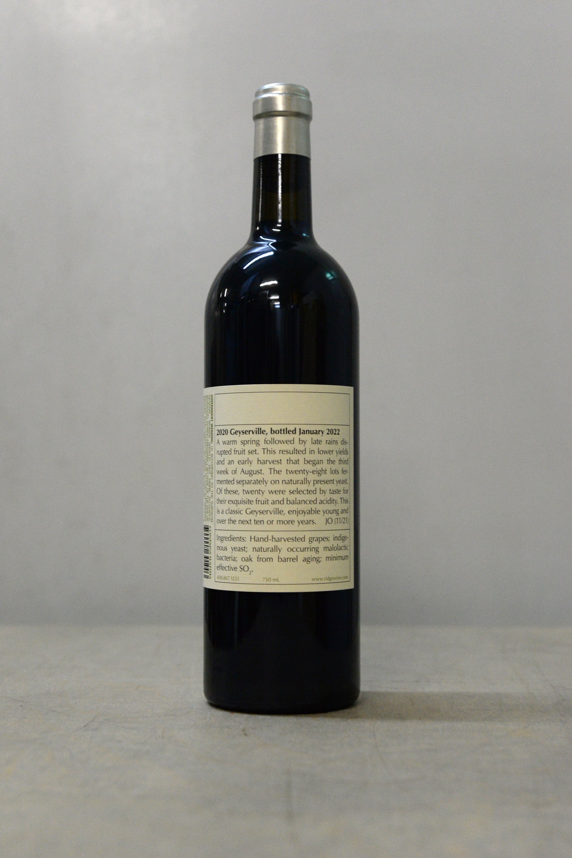 A warm spring followed by late rains disrupted fruit set. This resulted in lower yields and an early harvest that began the third week of August. The twenty-eight lots fermented separately on naturally present yeast. Of these, twenty were selected by taste for their exquisite fruit and balanced acidity. This is a classic Geyserville, enjoyable young and over the next ten or more years. JO (11/21)